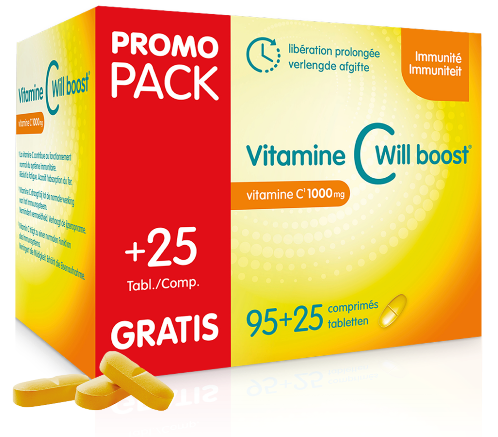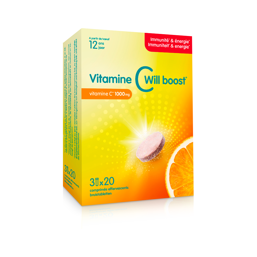 - Les comprimés ne te conviennent pas? Pas de souci ! Vitamine C Will boost® existe aussi en boîte de 60 comprimés effervescents. Il suffit de dissoudre un comprimé dans 200 ml d’eau pour obtenir une solution légèrement pétillante et agréable, au bon goût d’orange.